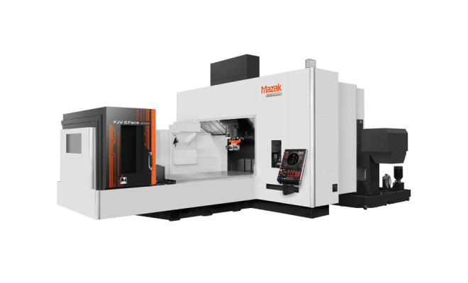 Mazaks vertikales Bearbeitungszentrum mit Fahrständer für eine 5-Seiten-Bearbeitung in einer einzigen Aufspannung.