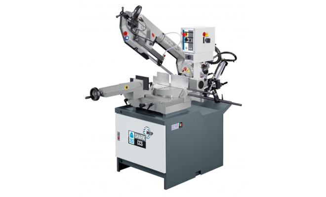Leistungsstarke Gehrungsbandsägemaschine für Schnitte von 45° rechts bis 60° links CCS (CutControlSystem) für automatischen Schnitt (stufenlose Regulierung des Vorschubs und Abschaltung bei Schnittende). Rund: 250 mm, Quadrat: 220 mm, Rechteck: 280 x 220 mm
