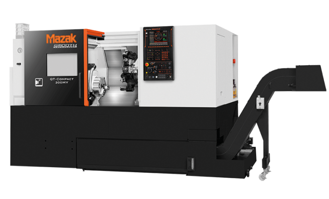 Die C-Achsen-Indexierung in 0,001°-Schritten und die angetriebene Werkzeuge am Revolver sorgen für außergewöhnliche Vielseitigkeit. Die CNC-gesteuerten Drehmaschinen bieten hochgenaue Positionierung durch äußerst verwindungssteife Linearrollenführungen und direkt gekoppelte Servomotoren an allen Linearachsen. Sie sind mit der innovativen Mazak SmoothC CNC-Steuerung ausgestattet.